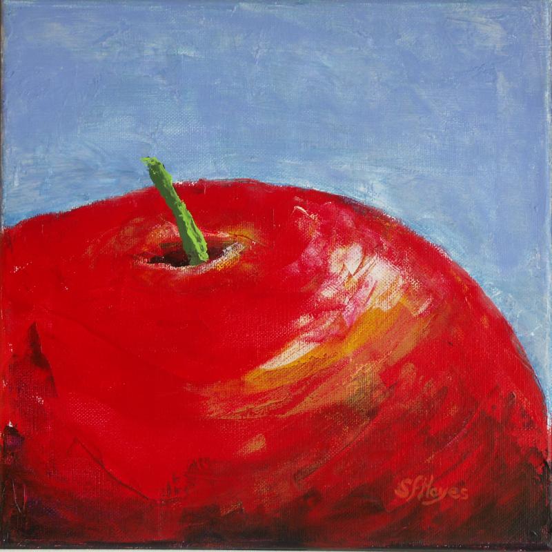 Pieces of fruit intrigue me for their texture and colors. Acrylic on canvas, 12" x 12", unframed.