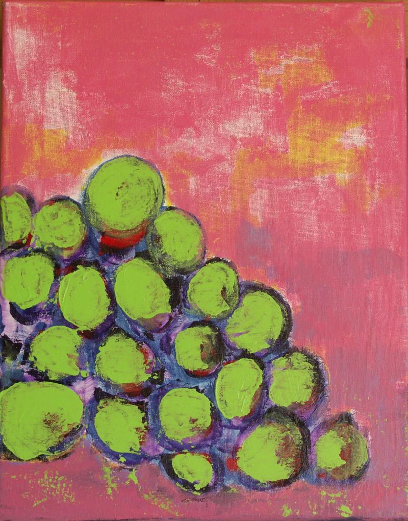 Grapes is a part of my "Fruit" series that I have been working on lately. All intended to be fun, colorful and fit for any kitchen. Acrylic on canvas, 11" x 14", unframed.