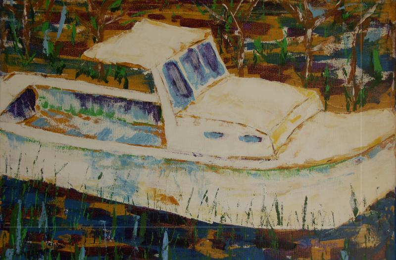 The first nautical addition to the "Ol Beast" series this Lobster boat has seen better days on the ocean, but she still floats and brings in the catch. Acrylic on canvas, 18" x 24", unframed.