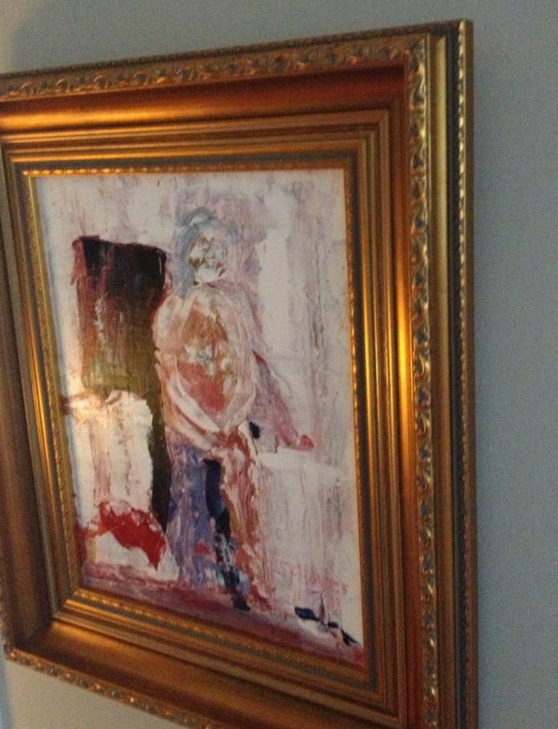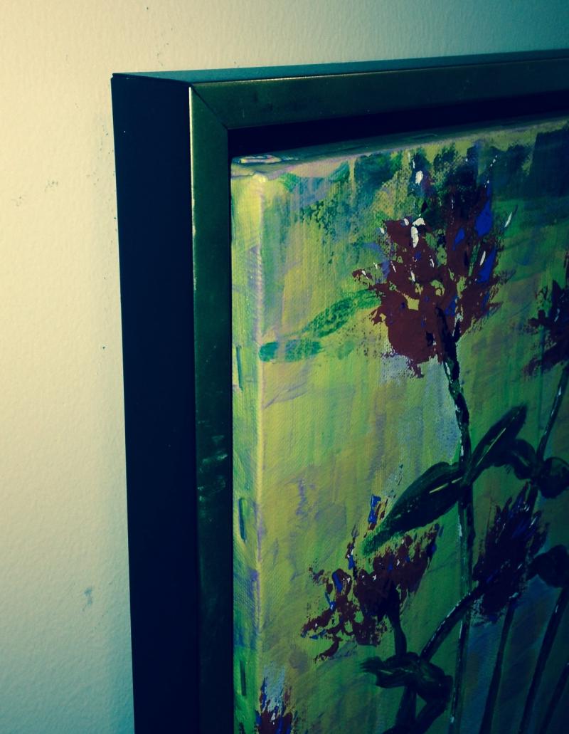 I have completed a two canvas study of Rosemary and this is the most abstract of the two. The mystery and colors found in this image captures me. Acrylic on canvas, framed, 11" x 14" The frame is a 3" gold leave and very ornate frame...looks pretty cool.