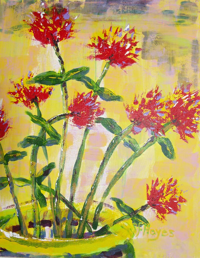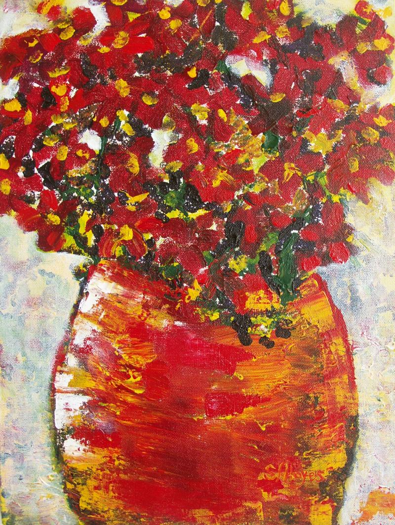 A second study of the red vase and flowers. Acrylic on canvas, unframed, 11" x 14"