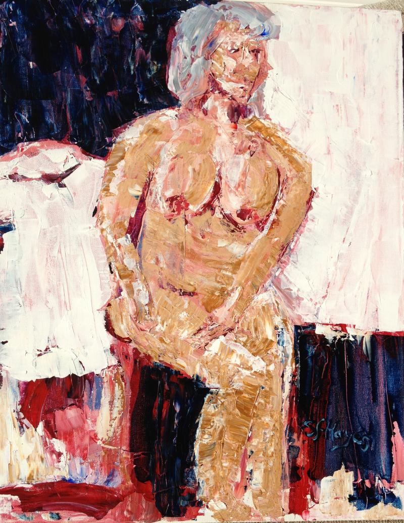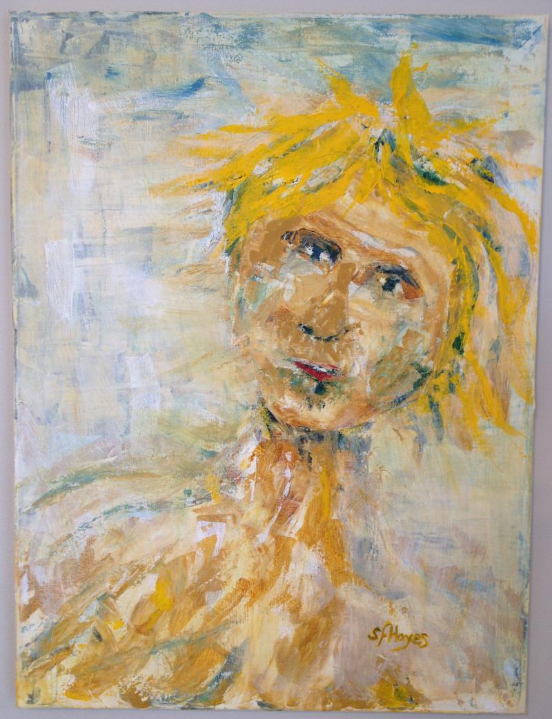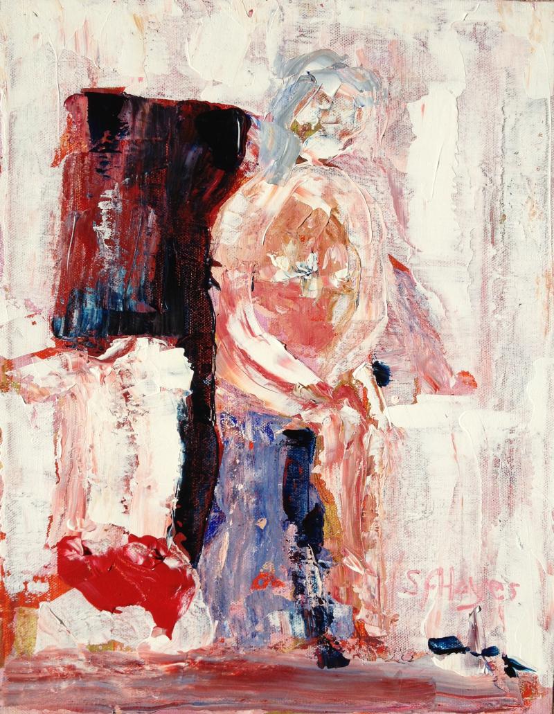 The second in the Rosemary study, this larger work reflects the constant movement that Rosemary is...even while sitting still, she seems to remain in motion. Acrylic on canvas, unframed, 16" x 20"