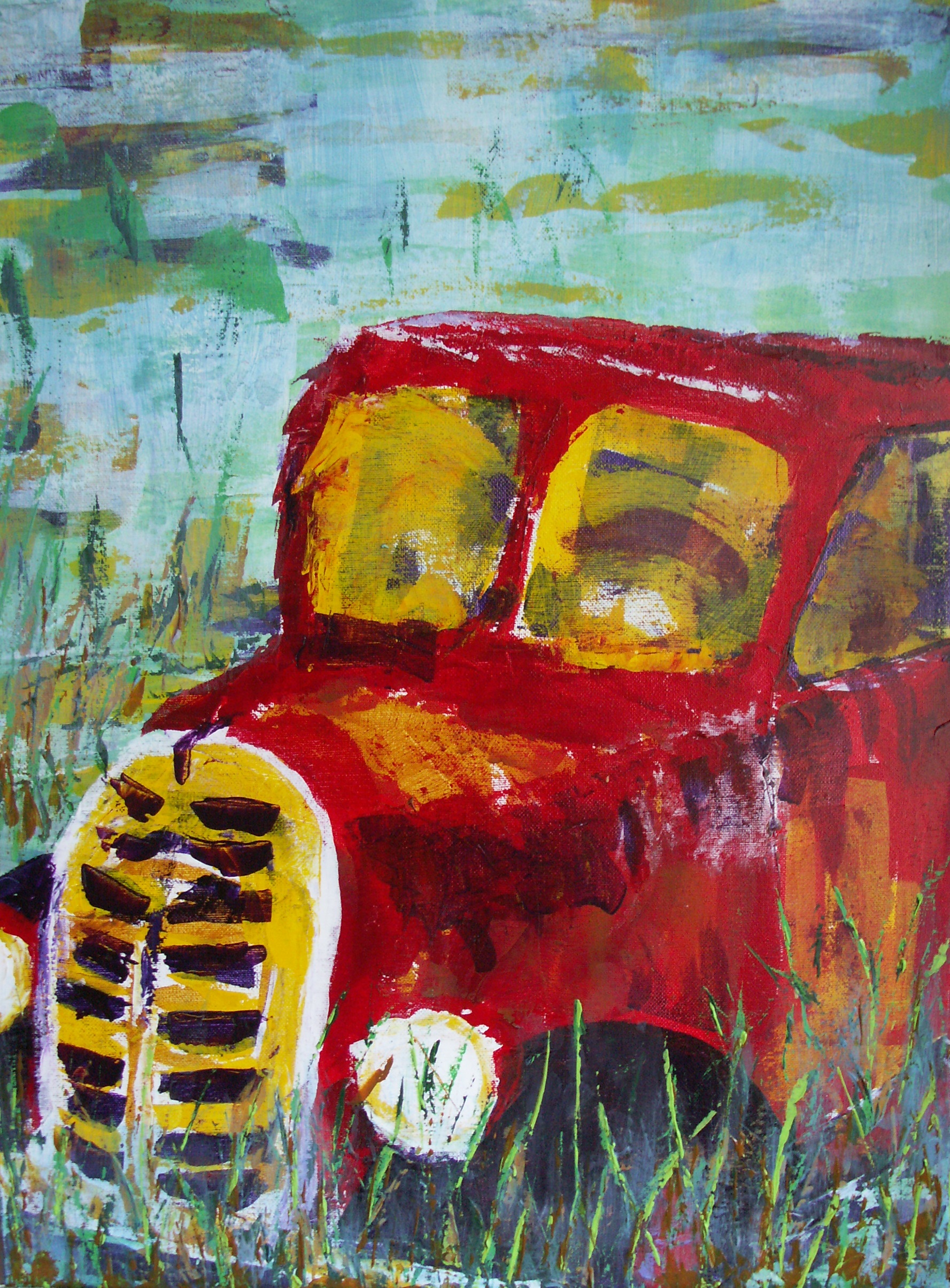 While at the Yarmouth Clam Festival I was asked why I didn't have more painting that were similar to the "Old Car in the Grass" and was told of an old truck collection nearby. I have visited that collection and have started a series I am calling "Ol Beasts" and this is the starting point. Acrylic on canvas, unframed, 20" x 24"